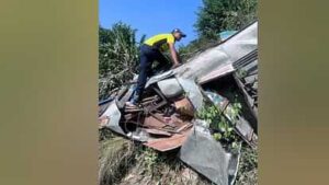 बस की कमानी टूटी और खाई में जा गिरी