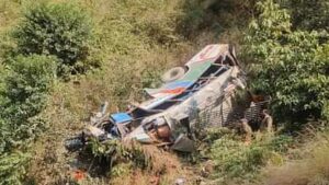 बस पौड़ी गढ़वाल के किनाथ से सोमवार सुबह करीब साढ़े छह बजे रामनगर के लिए चली थी। त्योहार की वजह से यात्री ज्यादा थे, जिससे बस ओवरलोड हो गई। करीब आठ बजे मरचूला के कूपी बैंड के पास चालक ने तीव्र मोड़ लेने का प्रयास किया तभी बस की कमानी टूट गई और वाहन अनियंत्रित होकर खाई में जा गिरी।