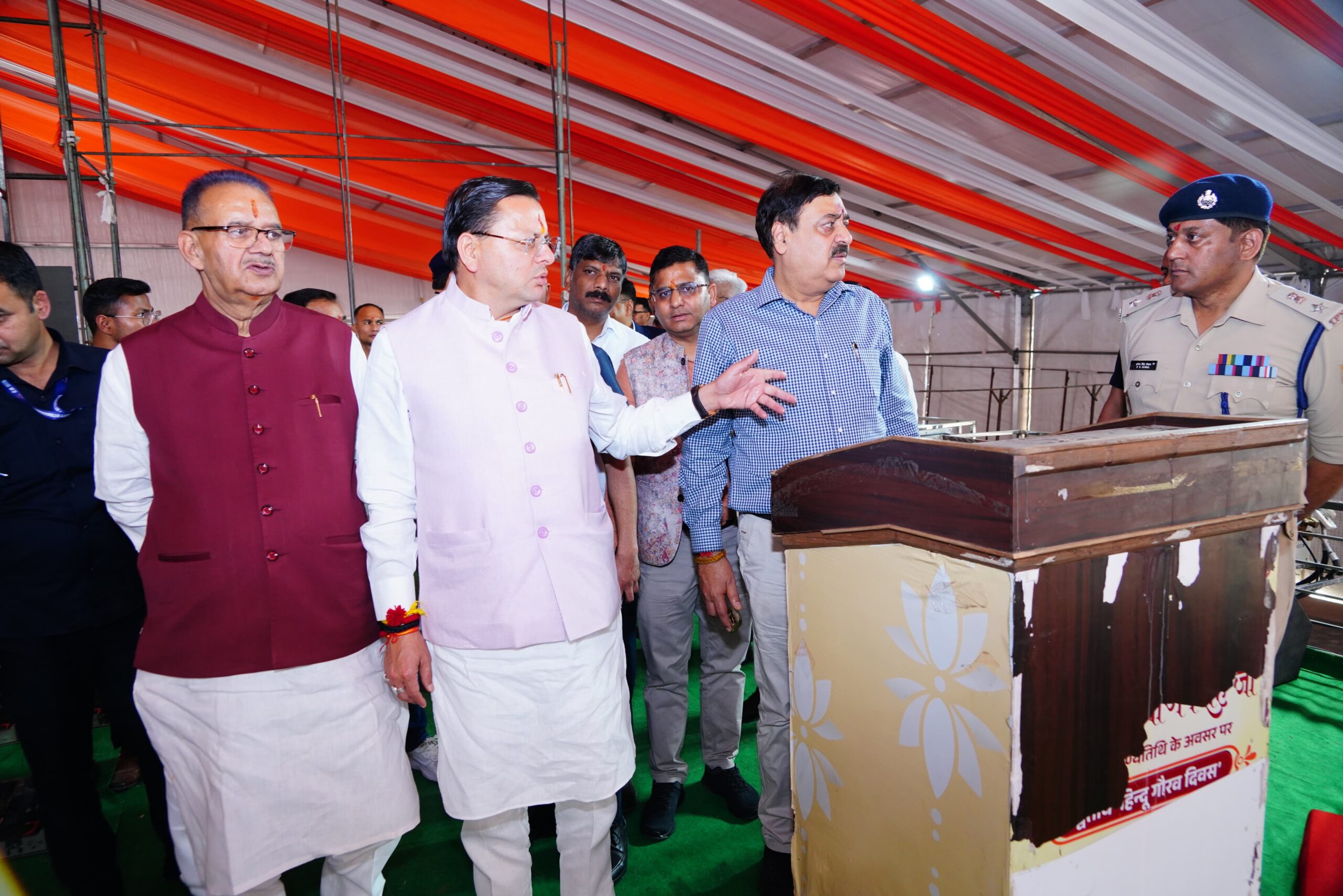 निरीक्षण के दौरान मुख्यमंत्री ने कार्यक्रम स्थल पर सुरक्षा, यातायात प्रबंधन, पार्किंग व्यवस्था, पेयजल, विद्युत आपूर्ति, स्वच्छता एवं अन्य आधारभूत सुविधाओं की तैयारियों की अधिकारियों से जानकारी ली। उन्होंने अधिकारियों को निर्देश दिए कि सभी व्यवस्थाएं समयबद्ध एवं उच्च गुणवत्ता के साथ सुनिश्चित की जाएं, ताकि कार्यक्रम में आने वाले आमजन को किसी प्रकार की असुविधा न हो मुख्यमंत्री ने विशेष रूप से सुरक्षा व्यवस्था को चाक-चौबंद रखने के निर्देश देते हुए कहा कि सभी एजेंसियों के बीच समन्वय स्थापित कर कार्य किया जाए। उन्होंने यातायात प्रबंधन की सुव्यवस्थित योजना तैयार करने एवं आपातकालीन सेवाओं की त्वरित उपलब्धता सुनिश्चित करने पर भी जोर दिया जसवंत ग्राउंड में मंच, दर्शक दीर्घा एवं अन्य आवश्यक व्यवस्थाओं के संबंध में अधिकारियों से विस्तृत जानकारी लेते हुए मुख्यमंत्री ने कहा कि कार्यक्रम की गरिमा के अनुरूप सभी तैयारियां पूरी की जाएं। उन्होंने साफ-सफाई एवं सौंदर्यीकरण कार्यों को प्राथमिकता देने के निर्देश भी दिए इस अवसर पर मुख्यमंत्री ने मां डाट काली मंदिर में पूजा-अर्चना कर प्रदेश की सुख-समृद्धि एवं कार्यक्रम की सफलता के लिए प्रार्थना की। मुख्यमंत्री ने कहा कि यह कार्यक्रम राज्य के लिए अत्यंत महत्वपूर्ण है।