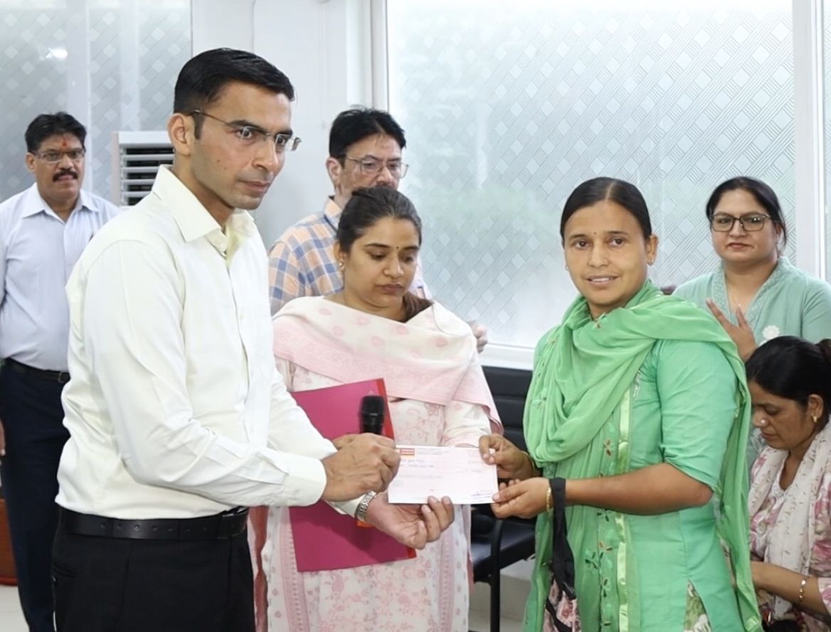 असहाय विधवा पुनम ठाकुर, बिरोजनी उनियाल, आशादेवी, खष्टी बिष्ट, बबीता एवं रेशमी जिनके पति एक्सीडेंट में गंभीर घायल हैं, का सहारा बना डीएम का रायफल फंड, 25-25 हजार आर्थिक सहायता चैक