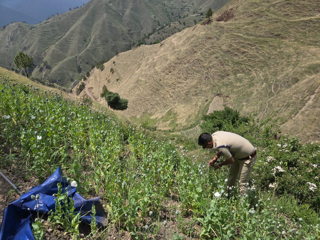 उक्त निर्देशों के क्रम में थाना त्यूणी पुलिस द्वारा नशे की प्रवृति पर प्रभावी अंकुश लगाये जाने हेतु थाना क्षेत्र में लगातार अभियान चलाया जा रहा है। इसी दौरान पुलिस को ग्राम सैंज में एक व्यक्ति द्वारा अपनी भूमि पर अवैध रूप से अफीम की खेती किये जाने की सूचना प्राप्त हुई, जिस पर थानाध्यक्ष त्यूणी द्वारा पुलिस बल के साथ मौके पर जाकर ग्राम सैंज में मेहर सिंह राणा द्वारा अपनी 0.012 हैक्टर भूमि पर अवैध रूप से की जा रही अफिम की खेती को नष्ट किया गया तथा इस सम्बन्ध में थाना त्यूणी पर अभियुक्त मेहर सिंह राणा के विरुद्ध मु0अ0स0 – 15/25 धारा 8/18 NDPS Act पंजीकृत किया गया।