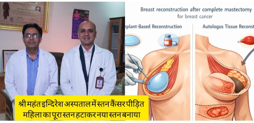 श्री महंत इन्दिरेश अस्पताल ने स्तन कैंसर उपचार के क्षेत्र में एक ऐतिहासिक उपलब्धि दर्ज की है उत्तराखंड में पहली बार मल्टी-सेंट्रिक्स ब्रेस्ट कैंसर से पीड़ित महिला का पूरा स्तन हटाने के बाद उसी के शरीर की मांसपेशियों और त्वचा से नया स्तन बनाकर सफल पुनर्निर्माण किया गया। यह जटिल सर्जरी अस्पताल के वरिष्ठ कैंसर सर्जन डॉ. अजीत तिवारी के नेतृत्व में की गई मेडिकल साइंस में इस बीमारी को मल्टी-सेंट्रिक्स ब्रेस्ट कैंसर कहा जाता है, जिसमें स्तन के