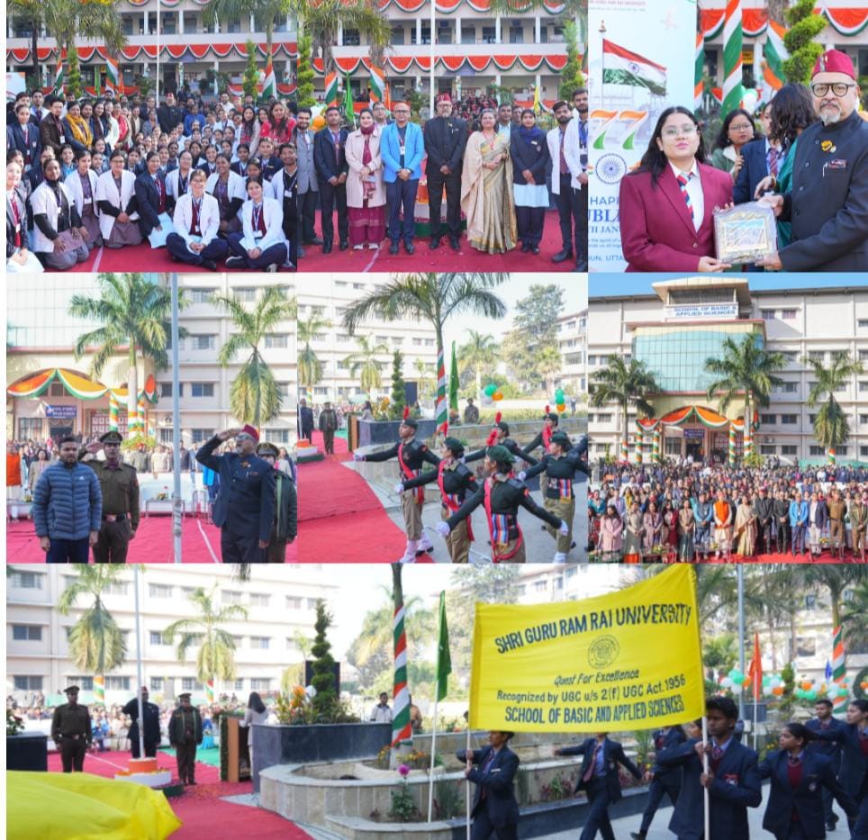 श्री गुरु राम राय विश्वविद्यालय (एसजीआरआरयू) सहित एसजीआरआर समूह के समस्त संस्थानों में देशभक्ति, राष्ट्र गौरव और भारतीय संविधान के प्रति आस्था का भव्य उत्सव देखने को मिला। दरबार श्री गुरु राम राय जी महाराज, एसजीआरआर विश्वविद्यालय एवं एसजीआरआर समूह के अन्य शिक्षण संस्थानों में राष्ट्रीय ध्वज पूरे सम्मान, आन-बान और शान के साथ फहराया गया।