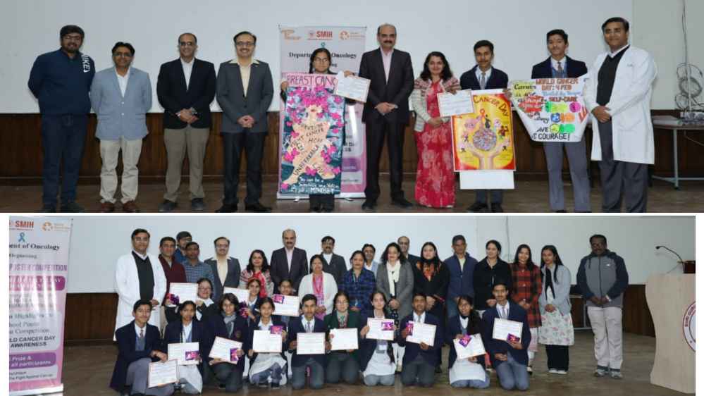देहरादून। श्री महंत इन्दिरेश अस्पताल के कैंसर सर्जरी विभाग की ओर से कैंसर जागरूकता कार्यक्रम आयोजित किया गया। देहरादून के विभिन्न स्कूलों के 12 स्कूलों के 120 बच्चों ने पोस्टर प्रतियोगिता में प्रतिभाग किया। हिमालयन पब्लिक स्कूल की अन्नया को बेस्ट पोस्टर बनाने के लिए प्रथम पुरस्कार से नवाजा गया। श्री गुरु राम राय पब्लिक स्कूल पटेल नगर के राम विशाल को द्वितीय एवं एसजीआरआर पब्लिक स्कूल तालाब शाखा के अभिषेक के पोस्टर को तृतीय स्थान प्राप्त हुआ। विजेता बच्चों को पुरस्कार देकर सम्मानित किया गया। प्रतियोगिता में प्रतिभाग करने वाले सभी 120 बच्चों को प्रमाण पत्र देकर उत्साहवर्धन किया गया। 10 बच्चों को सांत्वना पुरस्कार दिए गए।