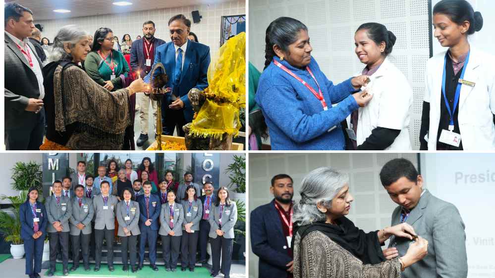 यूनिवर्सिटी के पथरीबाग कैंपस में आयोजित इस कार्यक्रम में विश्वविद्यालय की कुलपति प्रो. डॉ कुमुद सकलानी, कुलसचिव डॉ लोकेश गंभीर और डीएसडब्ल्यू प्रो. डॉ मालविका कांडपाल ने छात्रों को बेज पहनाकर सेरेमनी का शुभारंभ किया।