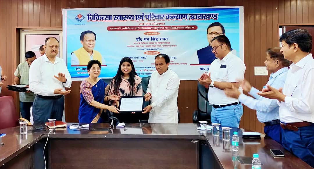 नियुक्ति पत्र वितरण समारोह में स्वास्थ्य महानिदेशक डॉ. सुनीता टम्टा, निदेशक डॉ. मनोज उप्रेती, निदेशक एनएचएम डॉ. मनू जैन, प्रभारी निदेशक डॉ. एच.सी.एस. मार्तोलिया सहित अन्य विभागीय अधिकारी व नव नियुक्त एक्स-रे तकनीशियन उपस्थित रहे।