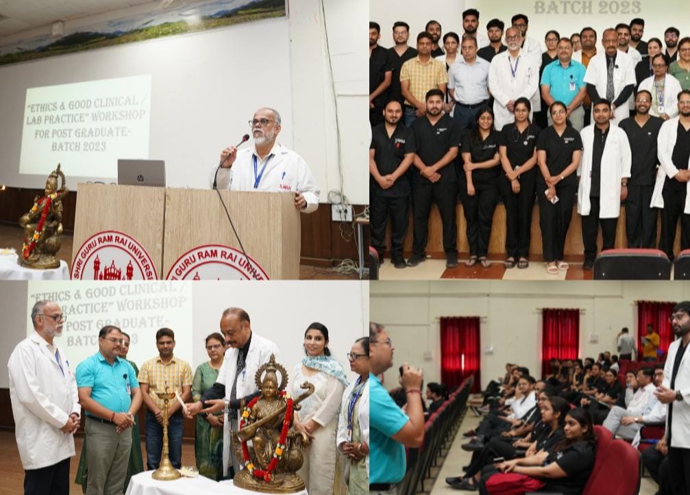 श्री गुरु राम राय इंस्टीट्यूट ऑफ मेडिकल एण्ड हेल्थ साइंसेज में इथिक्स एवम् गुड क्लीनिकल एवम् लैब प्रैक्टिस विषय पर एक दिवसीय कार्यशाला का आयोजन किया गया। कार्यशाला में एसजीआरआर मेडिकल काॅलेज के मेडिकल पोस्ट ग्रेजुएट, डीएम व एमसीएच कोर्स कर रहे 100 से अधिक छात्र-छात्राओं ने सक्रिय सहभागिता की बुधवार को श्री गुरु राम राय इंस्टीट्यूट ऑफ मेडिकल एण्ड हेल्थ साइंसेज के ऑडिटोरियम में आयोजित इस कार्यशाला का शुभारंभ डॉ. अशोक नायक, प्राचार्य, तथा डॉ. मनोज गुप्ता, निदेशक, श्री गुरु राम राय इंस्टीट्यूट ऑफ मेडिकल एंड हेल्थ साइंसेज द्वारा दीप प्रज्ज्वलन कर किया गया। कार्यशाला के दौरान एफएमटी विभागाध्यक्ष डॉ. ललित कुमार वाष्र्णेय ने “मेडिकल सेवा में नैतिक दायित्व और डॉक्टरों की भूमिका” विषय पर सारगर्भित व्याख्यान प्रस्तुत किया। उन्होंने डॉक्टरों के पेशेवर आचरण, मरीजों के प्रति दायित्व, और मेडिकल काउंसिल के दिशा-निर्देशों का गंभीरता से पालन करने की आवश्यकता पर बल दिया। कार्यशाला में विषय विशेषज्ञों द्वारा नैदानिक प्रयोगशालाओं की गुणवत्ता, रिपोर्टिंग में पारदर्शिता, सैंपल हैंडलिंग की शुद्धता एवं पेशेंट डाटा की गोपनीयता जैसे महत्वपूर्ण पहलुओं पर विस्तृत जानकारी दी गई। इस अवसर पर छात्र-छात्राओं को चिकित्सा के क्षेत्र में नैतिकता की महत्ता एवं आधुनिक प्रयोगशाला प्रक्रियाओं की बारीकियों से परिचित कराया गया, जिससे भविष्य में वे उच्च गुणवत्ता की सेवा प्रदान कर सकें कार्यशाला के अंत में प्रतिभागियों के प्रश्नों का समाधान भी विशेषज्ञों द्वारा किया गया, जिससे छात्र-छात्राओं को व्यावहारिक ज्ञान का लाभ मिला। फार्माकोलॉजी विभाग की डॉ. शालू बावा ने नेशनल मेडिकल कमिशन द्वारा प्रेस्क्रिप्शन से संबंधित जारी गाइडलाइंस की जानकारी दी और कहा कि डॉक्टर का हस्तलिखित पर्चा स्पष्ट व पठनीय होना आवश्यक है, जिससे मरीज व कैमिस्ट दोनों को भ्रम की स्थिति न हो। उन्होंने कहा कि दवाओं के जैनरिक नाम प्रेस्क्रिप्शन में लिखा जाना उचित रहता है। उन्होंने यह भी स्पष्ट किया कि एलोपैथिक डॉक्टर को अपने पर्चे में केवल एलोपैथिक दवाएं ही लिखनी चाहिए, अन्य किसी पद्धति की दवाओं की सलाह देना कानूनी रूप से गलत है। कार्यशाला में नैदानिक प्रयोगशाला संचालन, रिपोर्टिंग में पारदर्शिता, मरीज की जानकारी की गोपनीयता और पेशेवर आचरण जैसे विषयों पर विशेषज्ञों द्वारा गहन चर्चा की गई। इस शिक्षाप्रद कार्यशाला ने विद्यार्थियों को चिकित्सा के नैतिक व तकनीकी पक्षों की व्यावहारिक समझ प्रदान की, जो उनके भावी चिकित्सा जीवन के लिए उपयोगी सिद्ध होगी रिष्ठ फिजीशियन प्रो. डॉ. नरदीप नैथानी ने “अच्छा नैदानिक अभ्यास एवं चिकि